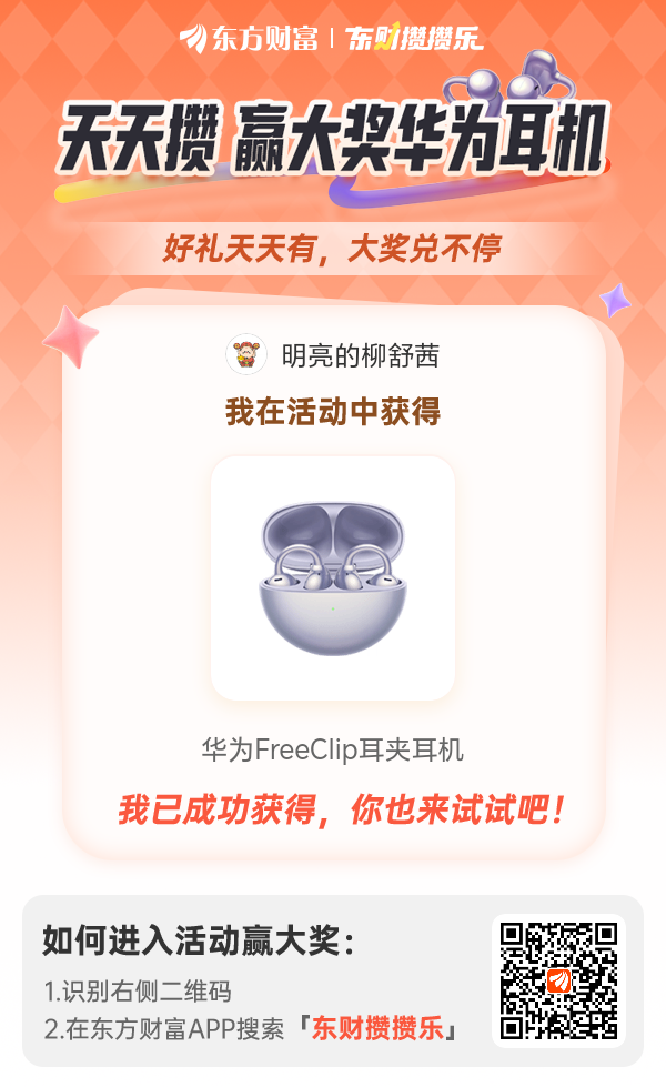 我已成功兑换华为FreeClip耳夹耳机奖品,越攒越停不下来!#【东财攒攒乐】天天攒,月月兑!#
