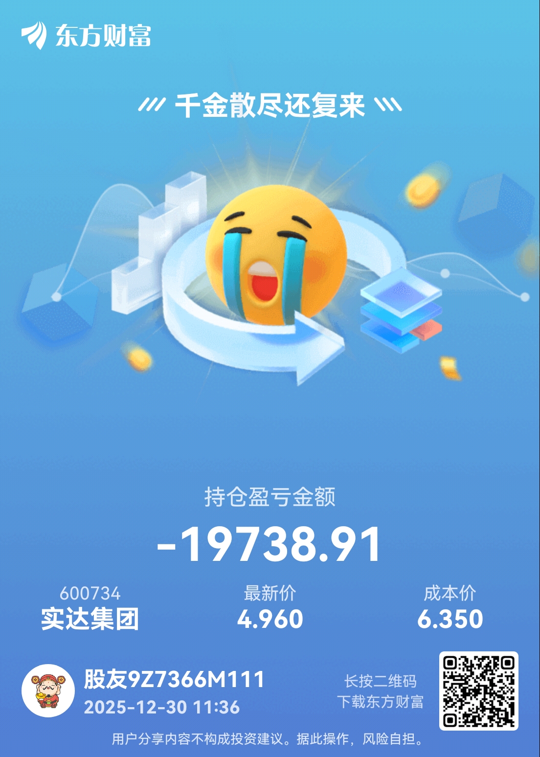 温馨提示: 1.根据《证券法》规定,禁止编造、传播虚假信息或者误导性信息,扰乱证券市场;2.用户在本社区发表的所有资料、言论等仅代表个人观点,与本网站立场无关,不对您构成任何投资建议。用户应基于自己的独立判断,自行决定证券投资并承担相应风险。《东方财富社区管理规定》