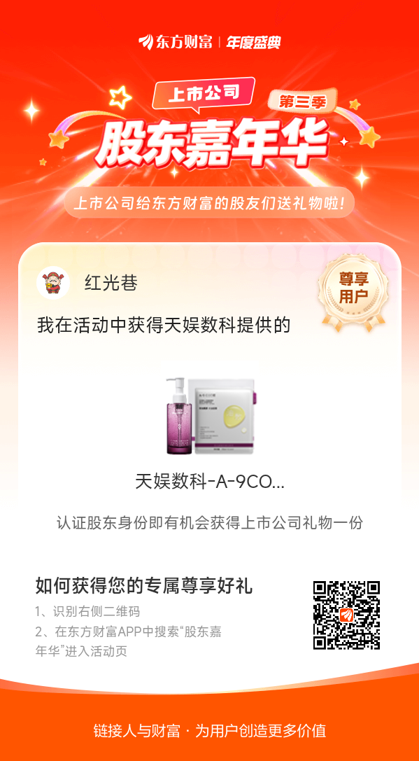 我在股东嘉年华活动中获得天娱数科-A-9CODE“晶润”礼盒,也是薅到上市公司羊毛了~#【有奖】第三季股东嘉年华温暖启幕,晒出你的“锦鲤时刻”!#