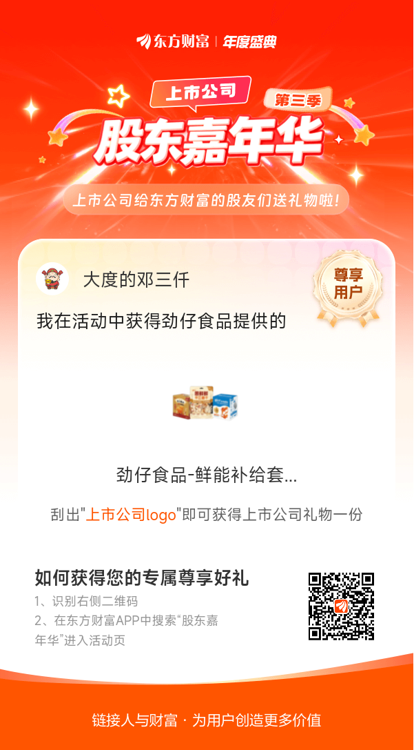 我在股东嘉年华活动中获得劲仔食品-鲜能补给套装,运气爆棚!#【有奖】第三季股东嘉年华温暖启幕,晒出你的“锦鲤时刻”!#
