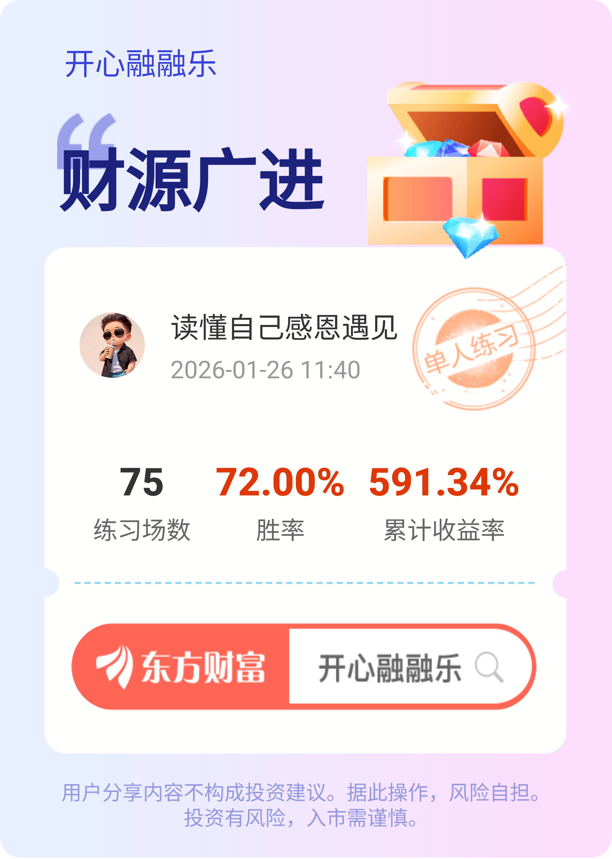 郑重声明:用户在财富号/股吧/博客等社区发表的所有信息(包括但不限于文字、视频、音频、数据及图表)仅代表个人观点,与本网站立场无关,不对您构成任何投资建议,据此操作风险自担。请勿相信代客理财、免费荐股和炒股培训等宣传内容,远离非法证券活动。请勿添加发言用户的手机号码、公众号、微博、微信及QQ等信息,谨防上当受骗!