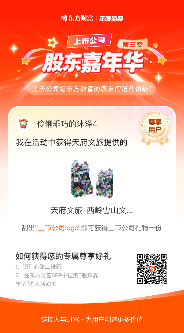 我在股东嘉年华活动中获得天府文旅-西岭雪山文创立体画,上市公司百万豪礼有我一份。