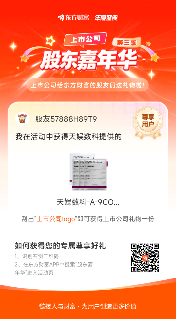 我在股东嘉年华活动中获得天娱数科-A-9CODE 安肤紧致微乳面膜,运气爆棚!
