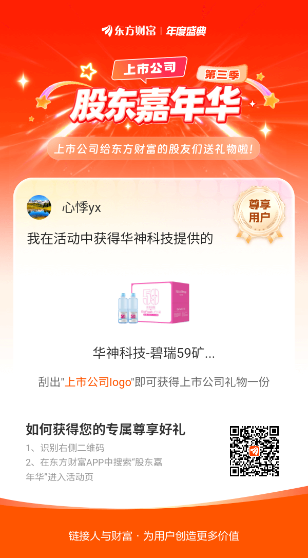 我在股东嘉年华活动中获得华神科技-碧瑞59矿泉水,运气爆棚!
