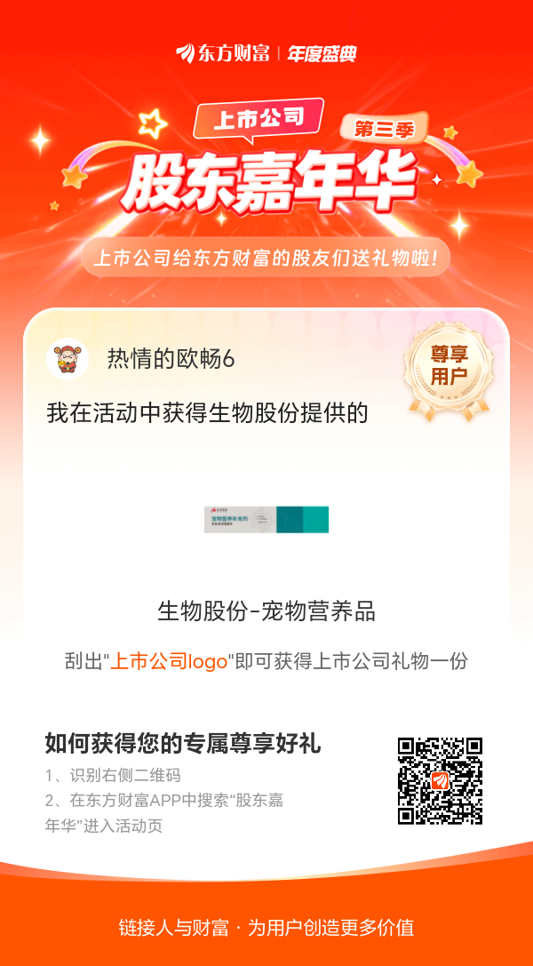 我在股东嘉年华活动中获得生物股份-宠物营养品,奖品太丰富啦~#【有奖】第三季股东嘉年华温暖启幕,晒出你的“锦鲤时刻”!#