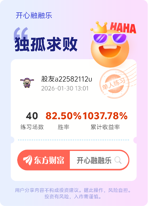 温馨提示: 1.根据《证券法》规定,禁止编造、传播虚假信息或者误导性信息,扰乱证券市场;2.用户在本社区发表的所有资料、言论等仅代表个人观点,与本网站立场无关,不对您构成任何投资建议。用户应基于自己的独立判断,自行决定证券投资并承担相应风险。《东方财富社区管理规定》