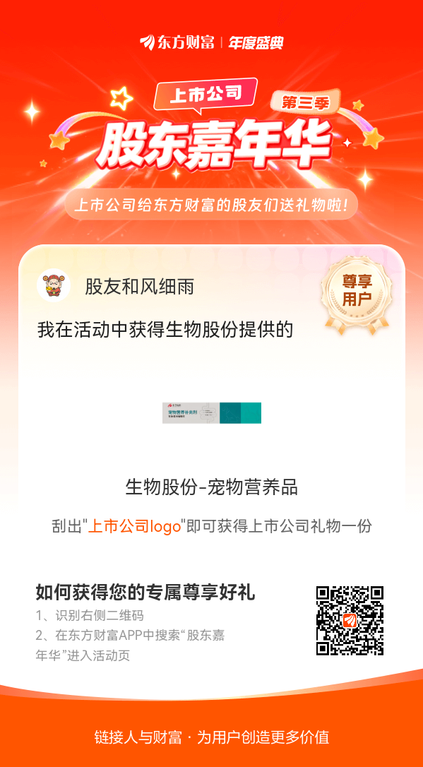 我在股东嘉年华活动中获得生物股份-宠物营养品,奖品太丰富啦~#【有奖】第三季股东嘉年华温暖启幕,晒出你的“锦鲤时刻”!#