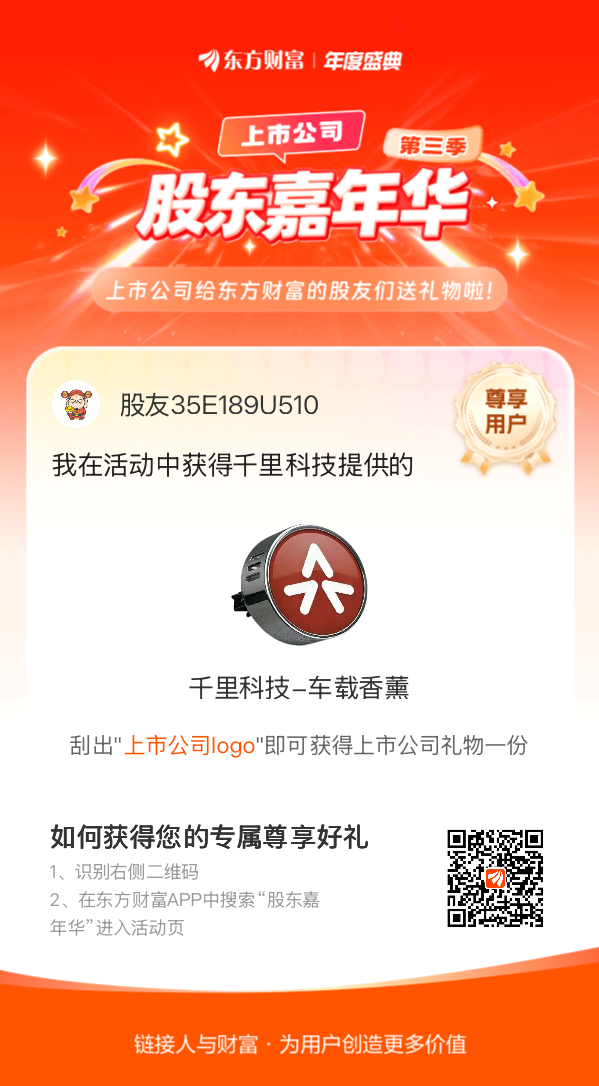 我在股东嘉年华活动中获得千里科技-车载香薰,今日份幸运加满!#【有奖】第三季股东嘉年华温暖启幕,晒出你的“锦鲤时刻”!#