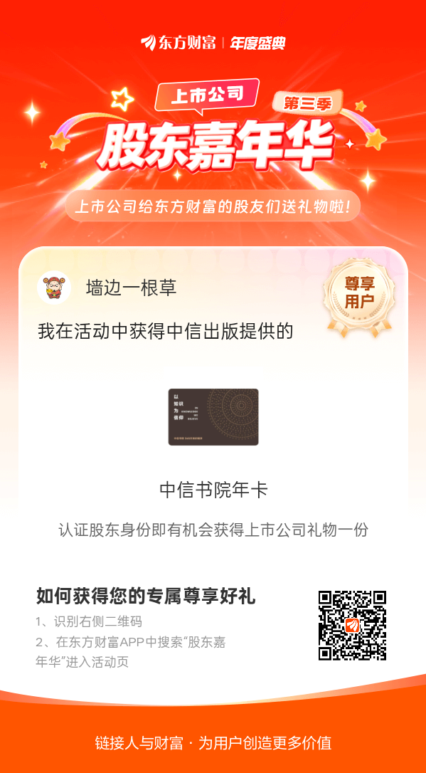 我在股东嘉年华活动中获得中信书院年卡,也是薅到上市公司羊毛了~