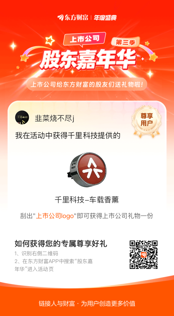 我在股东嘉年华活动中获得千里科技-车载香薰,今日份幸运加满!#【有奖】第三季股东嘉年华温暖启幕,晒出你的“锦鲤时刻”!#