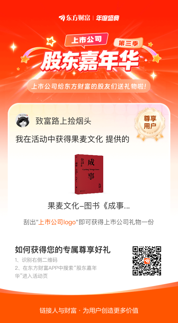 我在股东嘉年华活动中获得果麦文化-图书《成事 冯唐品读曾国藩嘉言钞》,上市公司百万豪礼有我一份。#【有奖】第三季股东嘉年华温暖启幕,晒出你的“锦鲤时刻”!#