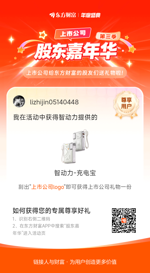 我在股东嘉年华活动中获得智动力-充电宝,今日份幸运加满!#【有奖】第三季股东嘉年华温暖启幕,晒出你的“锦鲤时刻”!#