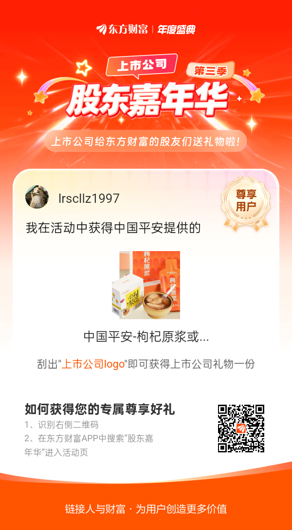 我在股东嘉年华活动中获得中国平安-枸杞原浆或小吊梨汤礼盒(专场),也是薅到上市公司羊毛了~#【有奖】第三季股东嘉年华温暖启幕,晒出你的“锦鲤时刻”!#