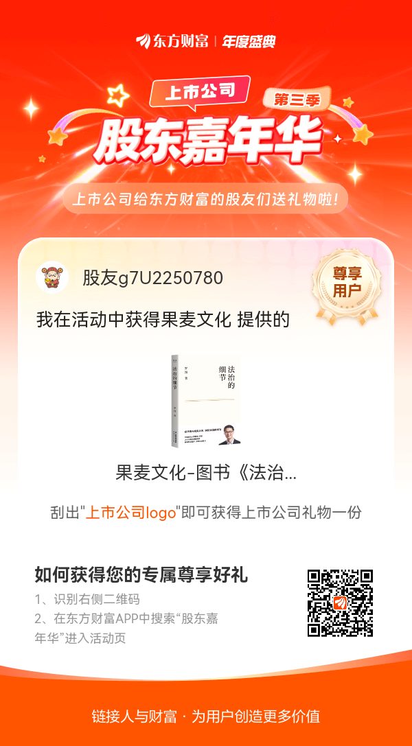 我在股东嘉年华活动中获得果麦文化-图书《法治的细节》,快来一起玩!#【有奖】第三季股东嘉年华温暖启幕,晒出你的“锦鲤时刻”!#