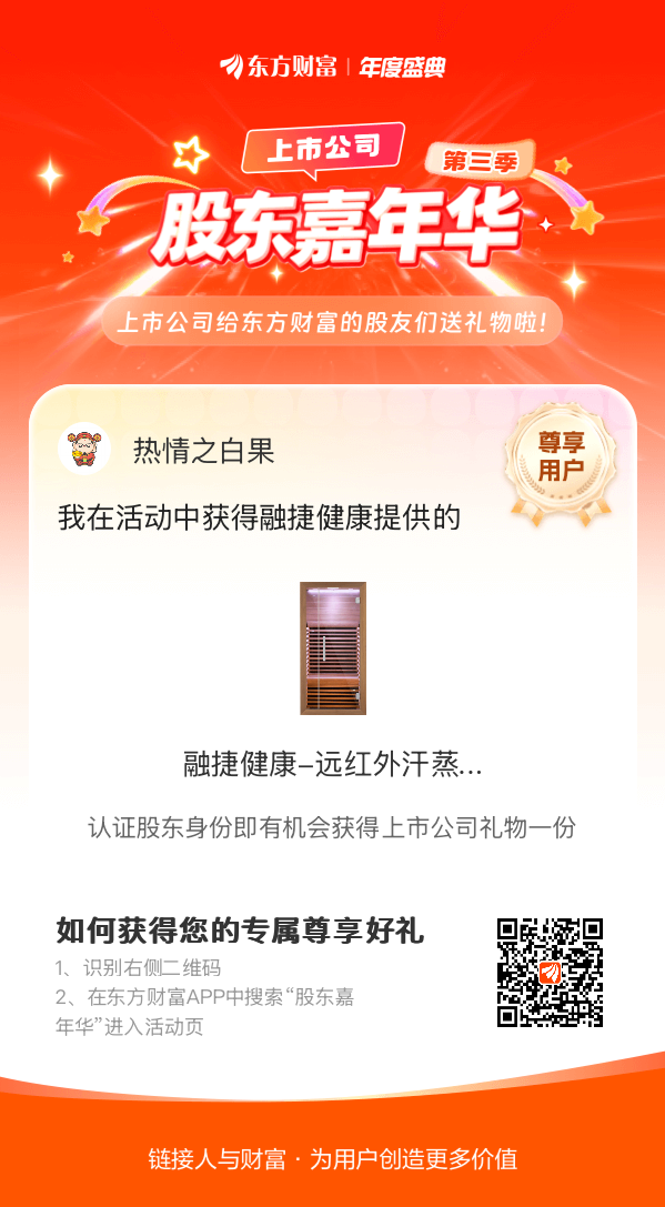 我在股东嘉年华活动中获得融捷健康-远红外汗蒸房代金券(专场),运气爆棚!#【有奖】第三季股东嘉年华温暖启幕,晒出你的“锦鲤时刻”!#