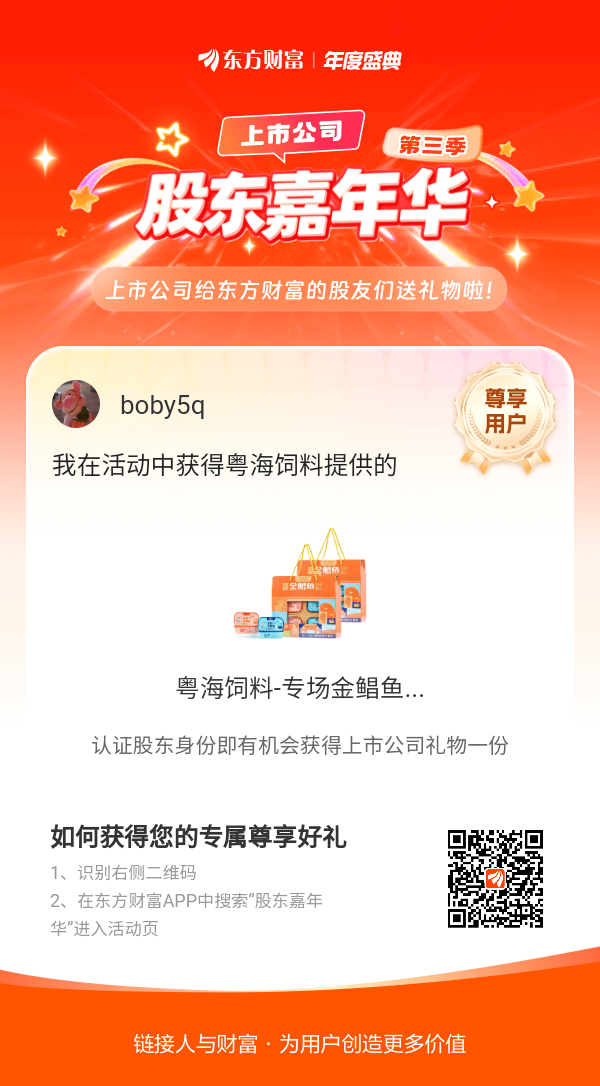 我在股东嘉年华活动中获得粤海饲料-专场金鲳鱼罐头礼盒,也是薅到上市公司羊毛了~#【有奖】第三季股东嘉年华温暖启幕,晒出你的“锦鲤时刻”!#