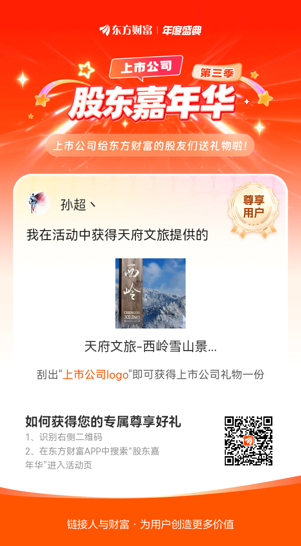 我在股东嘉年华活动中获得天府文旅-西岭雪山景区门票+鸳鸯池索道往返票,快来一起玩!#【有奖】第三季股东嘉年华温暖启幕,晒出你的“锦鲤时刻”!#