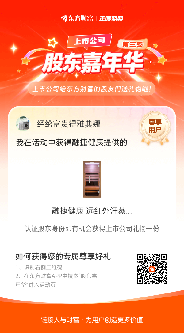 我在股东嘉年华活动中获得融捷健康-远红外汗蒸房代金券(专场),运气爆棚!#【有奖】第三季股东嘉年华温暖启幕,晒出你的“锦鲤时刻”!#