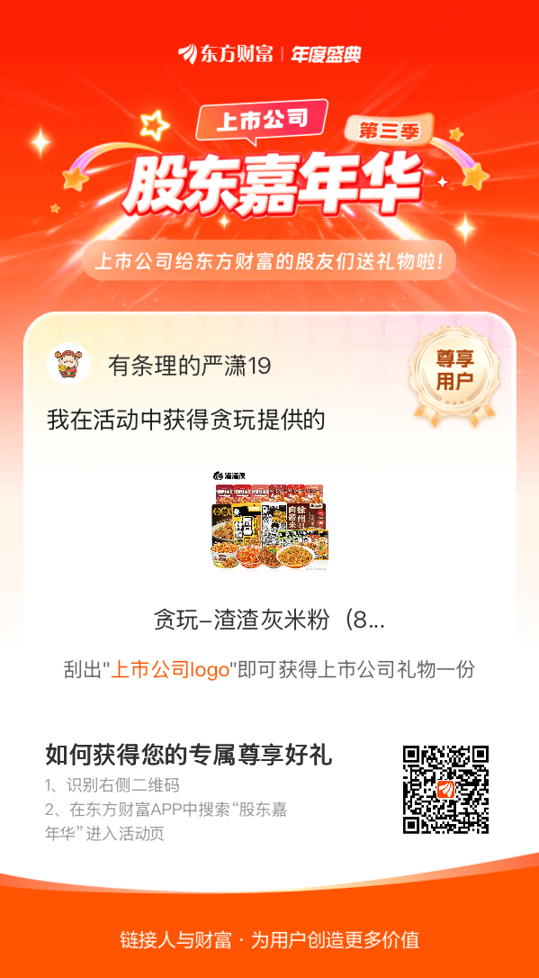 我在股东嘉年华活动中获得贪玩-渣渣灰米粉(8盒 箱),上市公司百万豪礼有我一份。