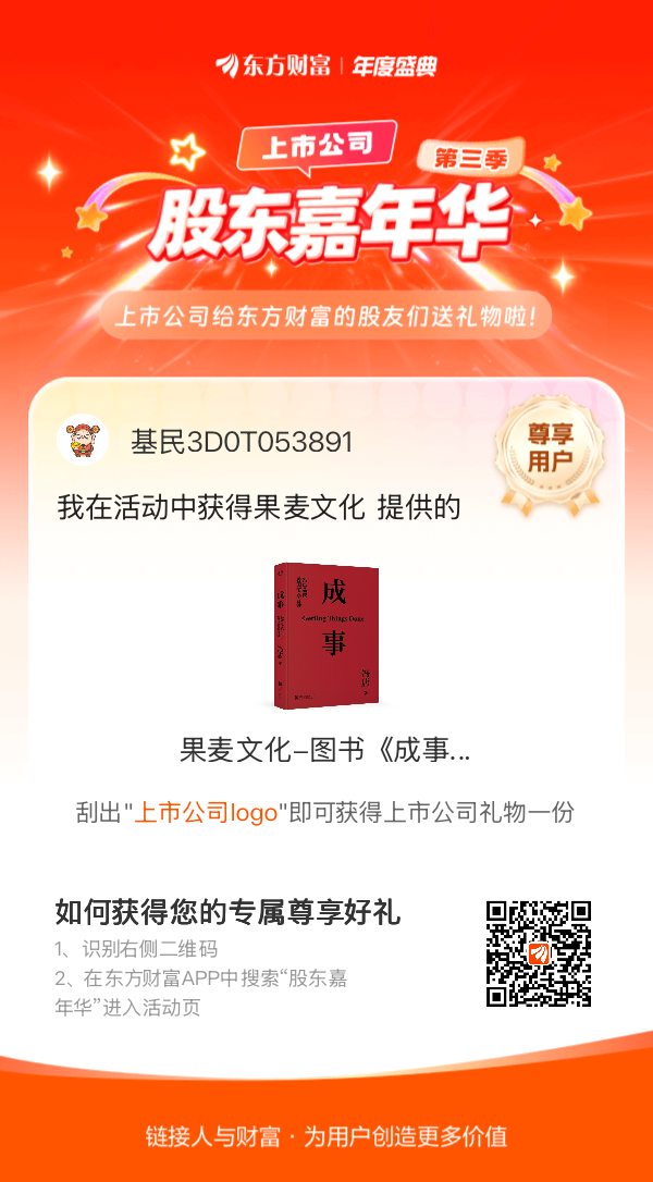 我在股东嘉年华活动中获得果麦文化-图书《成事 冯唐品读曾国藩嘉言钞》,上市公司百万豪礼有我一份。#【有奖】第三季股东嘉年华温暖启幕,晒出你的“锦鲤时刻”!#