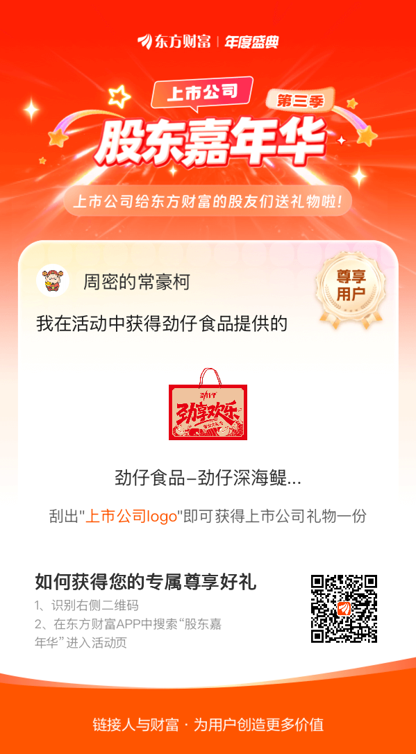 我在股东嘉年华活动中获得劲仔食品-劲仔深海鳀鱼礼盒,上市公司百万豪礼有我一份。#【有奖】第三季股东嘉年华温暖启幕,晒出你的“锦鲤时刻”!#