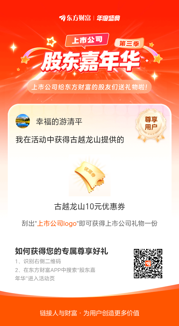 我在股东嘉年华活动中获得古越龙山10元优惠券,快来一起玩!#【有奖】第三季股东嘉年华温暖启幕,晒出你的“锦鲤时刻”!#