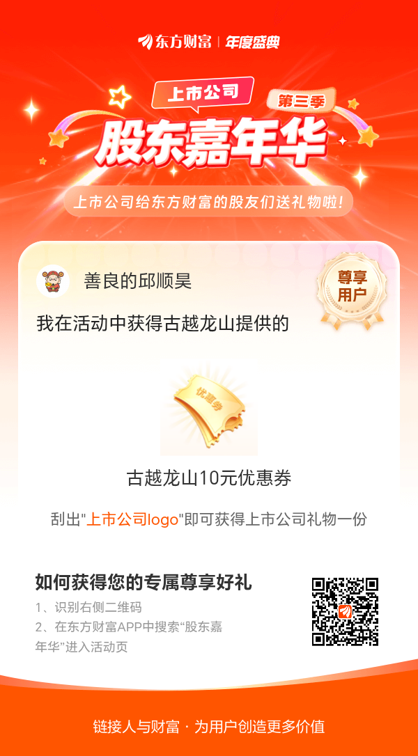 我在股东嘉年华活动中获得古越龙山10元优惠券,2026开年大顺!#【有奖】第三季股东嘉年华温暖启幕,晒出你的“锦鲤时刻”!#