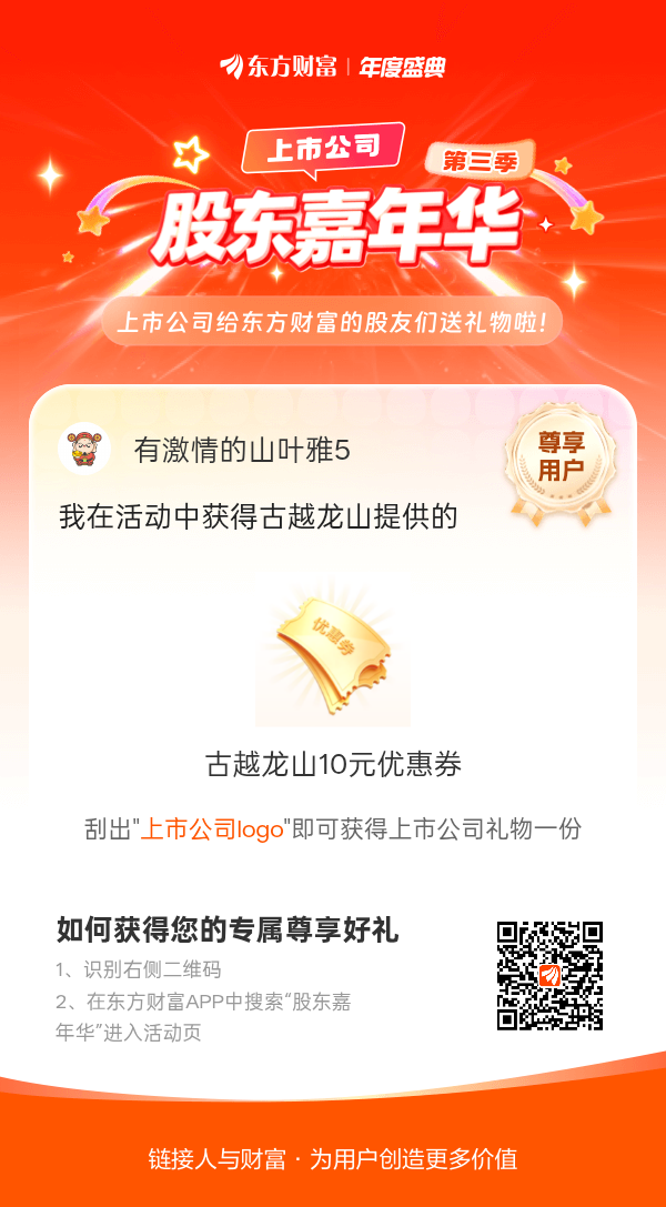 我在股东嘉年华活动中获得古越龙山10元优惠券,上市公司百万豪礼有我一份。#【有奖】第三季股东嘉年华温暖启幕,晒出你的“锦鲤时刻”!#