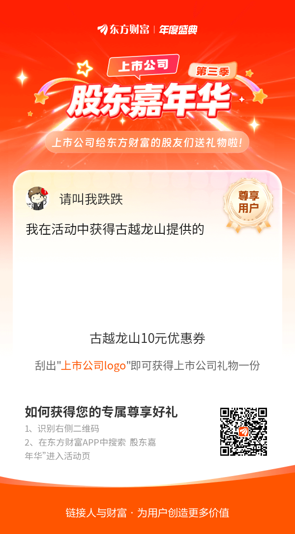 我在股东嘉年华活动中获得古越龙山10元优惠券,运气爆棚!#【有奖】第三季股东嘉年华温暖启幕,晒出你的“锦鲤时刻”!#