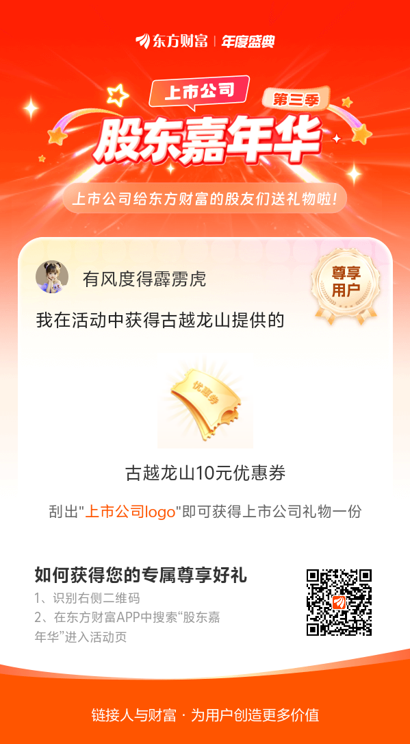 我在股东嘉年华活动中获得古越龙山10元优惠券,快来一起玩!#【有奖】第三季股东嘉年华温暖启幕,晒出你的“锦鲤时刻”!#