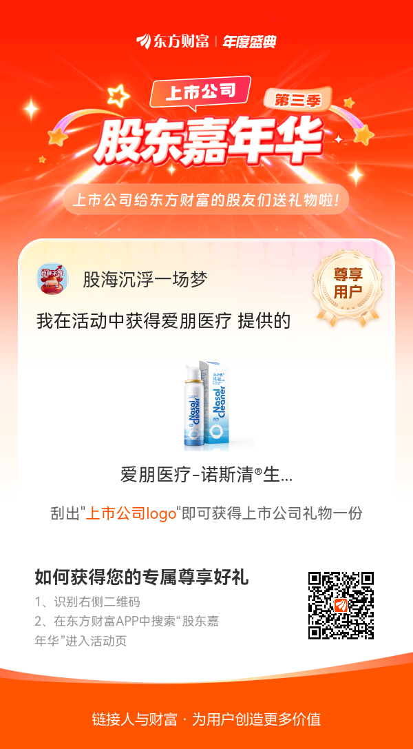 我在股东嘉年华活动中获得爱朋医疗-诺斯清生理性海水鼻腔护理喷雾器,上市公司百万豪礼有我一份。#【有奖】第三季股东嘉年华温暖启幕,晒出你的“锦鲤时刻”!#