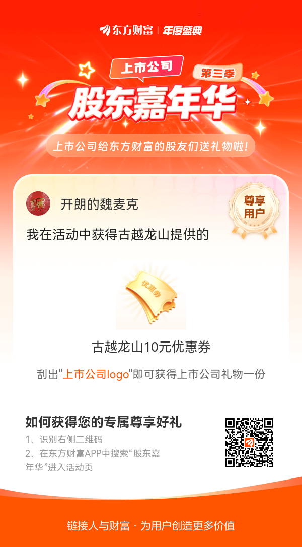 我在股东嘉年华活动中获得古越龙山10元优惠券,奖品太丰富啦~#【有奖】第三季股东嘉年华温暖启幕,晒出你的“锦鲤时刻”!#