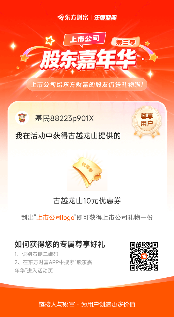 我在股东嘉年华活动中获得古越龙山10元优惠券,也是薅到上市公司羊毛了~