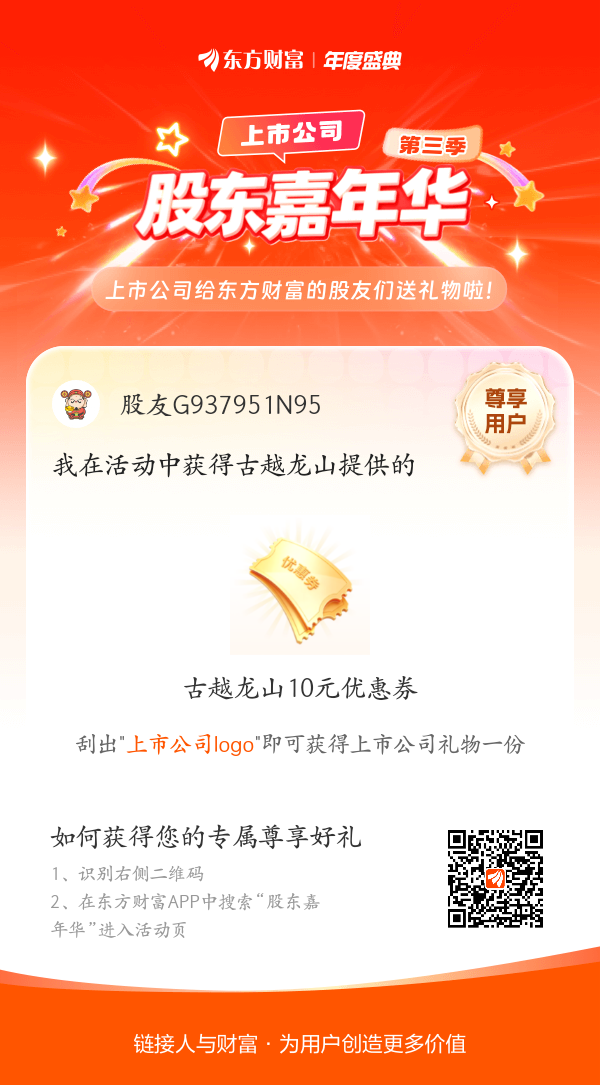 我在股东嘉年华活动中获得古越龙山10元优惠券,快来一起玩!#【有奖】第三季股东嘉年华温暖启幕,晒出你的“锦鲤时刻”!#