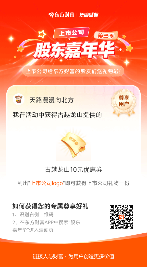 我在股东嘉年华活动中获得古越龙山10元优惠券,快来一起玩!#【有奖】第三季股东嘉年华温暖启幕,晒出你的“锦鲤时刻”!#