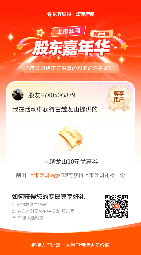 我在股东嘉年华活动中获得古越龙山10元优惠券,实力与运气兼具!#【有奖】第三季股东嘉年华温暖启幕,晒出你的“锦鲤时刻”!#