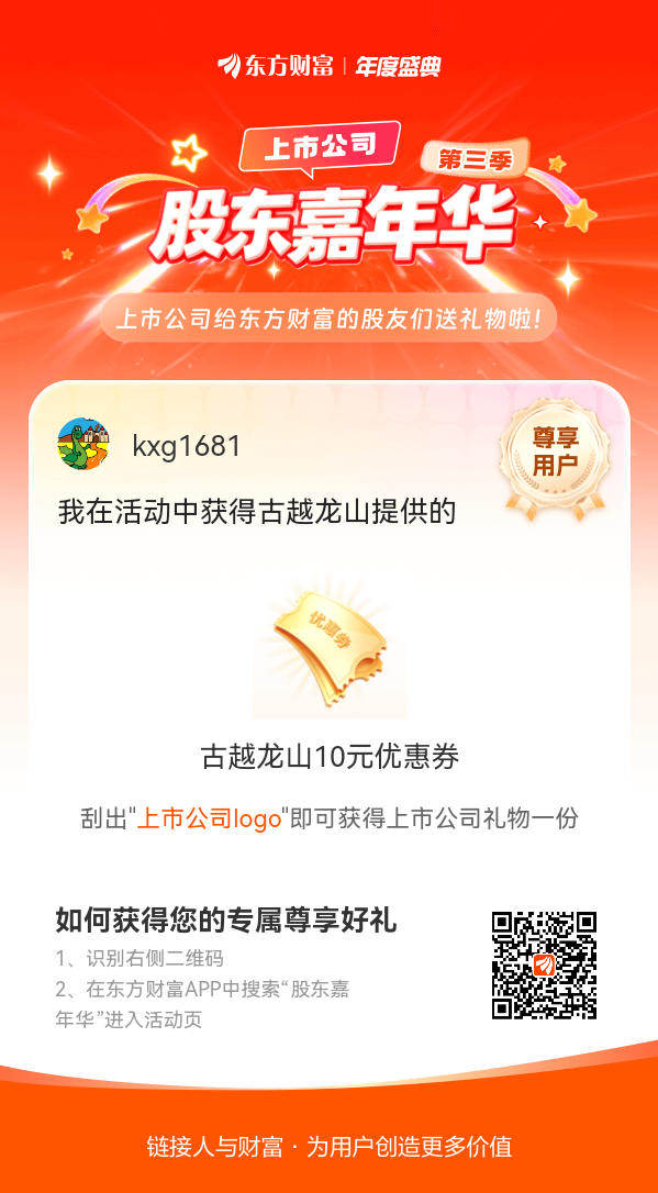 我在股东嘉年华活动中获得古越龙山10元优惠券,2026开年大顺!#【有奖】第三季股东嘉年华温暖启幕,晒出你的“锦鲤时刻”!#