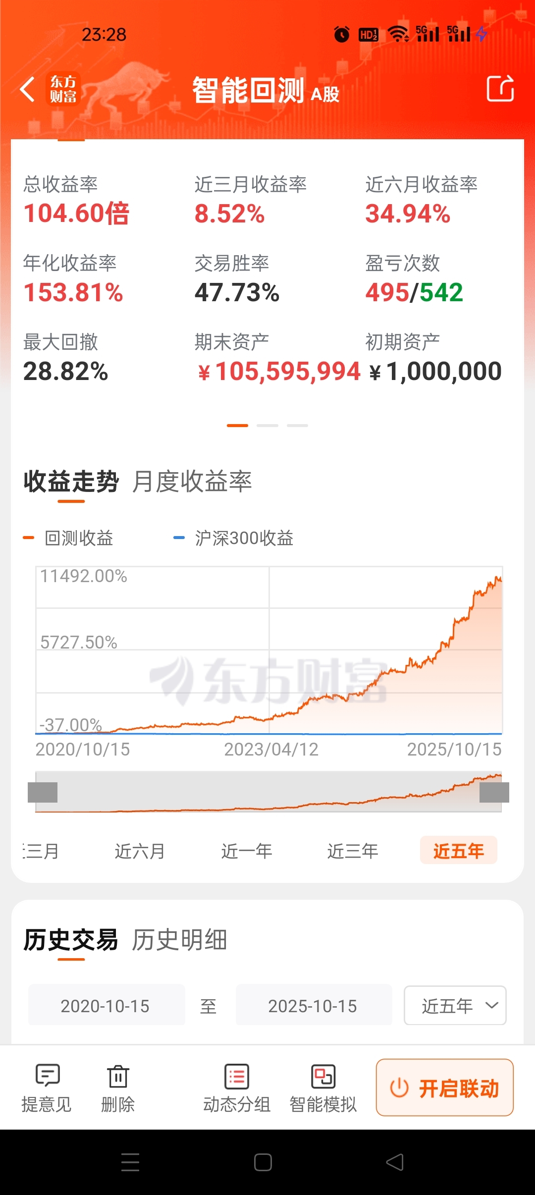 升级版看评论5年100倍的创业板上影线法智能模拟跟踪贴。最大回撤28。年化153