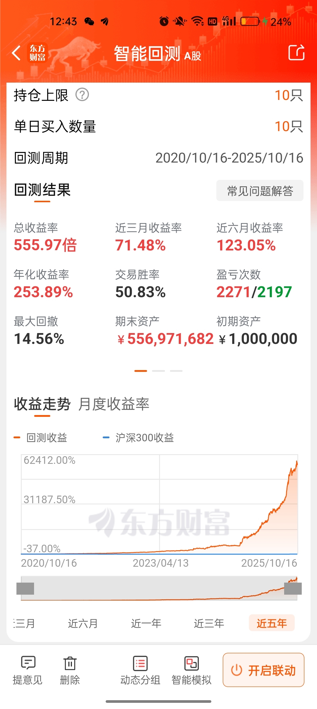 同一个策略构建的。年化最差测试是1倍,单月均11左右。有搞胜率策略可以换