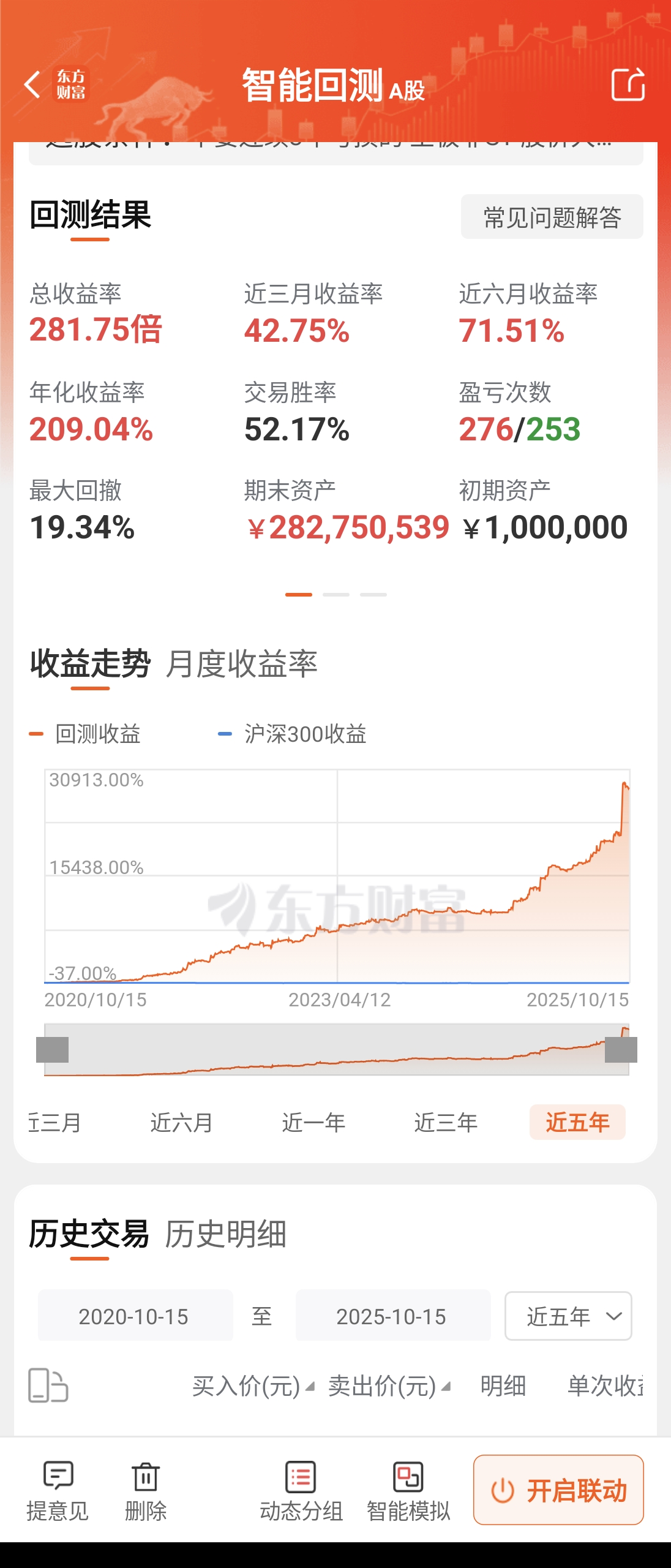 刚刚给自己这个280倍的策略做了个逐年回测,从15年到25年,其中两年都被打到腰斩。17年和24年年收益都是负50多,想想面前什么勾八策略都没用,唯有管住手。所以哪怕几百几千倍的收益实际情况并不是理想的,好的策略只能说增强持股信心吧,未来还有多少熊市等着我们,就拿这周行情,就像熊市来了,策略也连亏给人整没信心了。策略有了牛没了