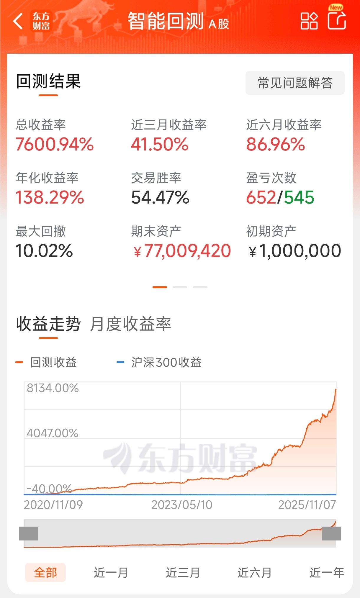 ST策略想搞到百倍还挺难的,虽然也符合我的策略模型可一个涨幅10%一个涨幅5%融合到一块就畸形了,听说要ST改革到10%涨幅不知道啥时候实现,目前只能做备选票池,发现好像每年3-5和8-10月年报半年报公开期间主板行情差反而利好ST板块两者形成互补。