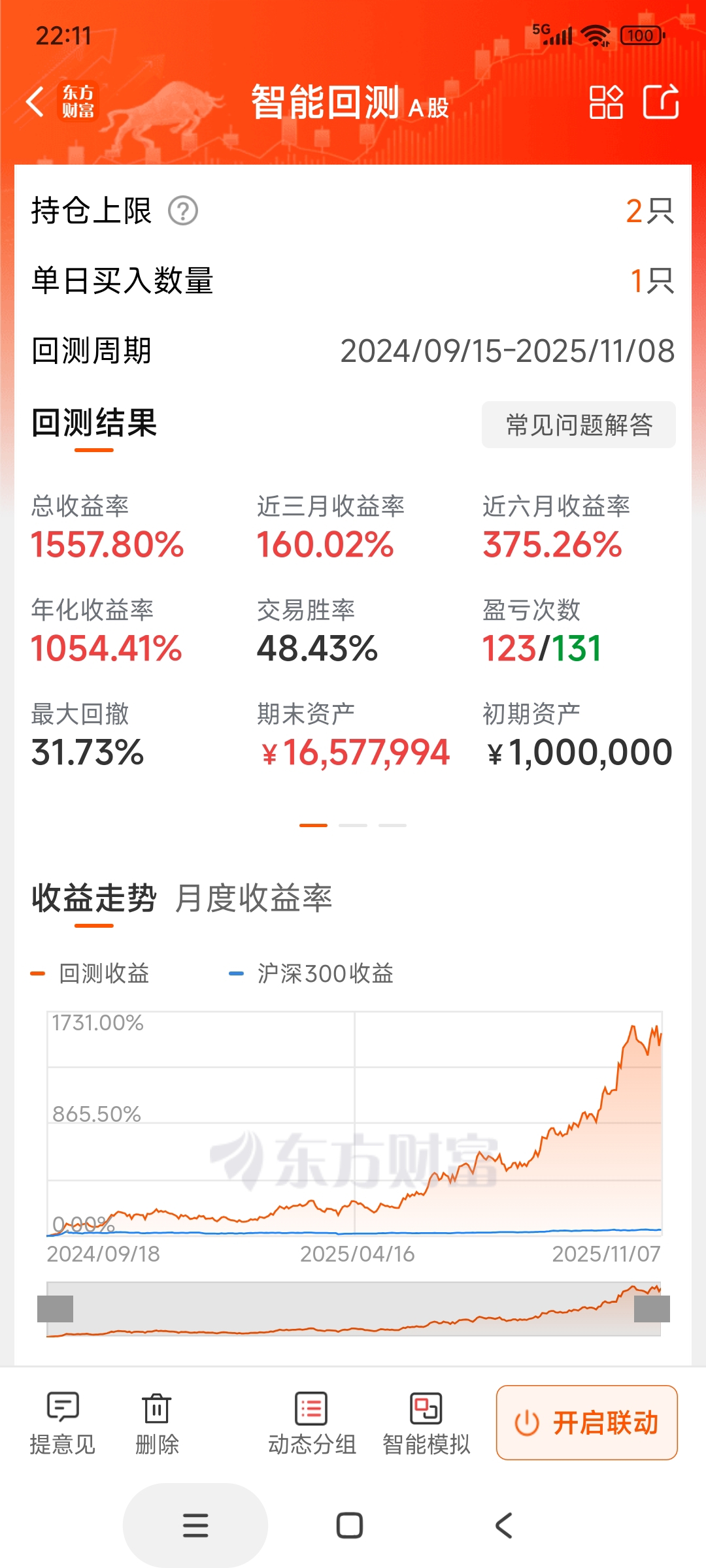 牛市年化30倍。。。随便弄了下,把我自己给吓到了,还没优化。这真得花时间好好整下