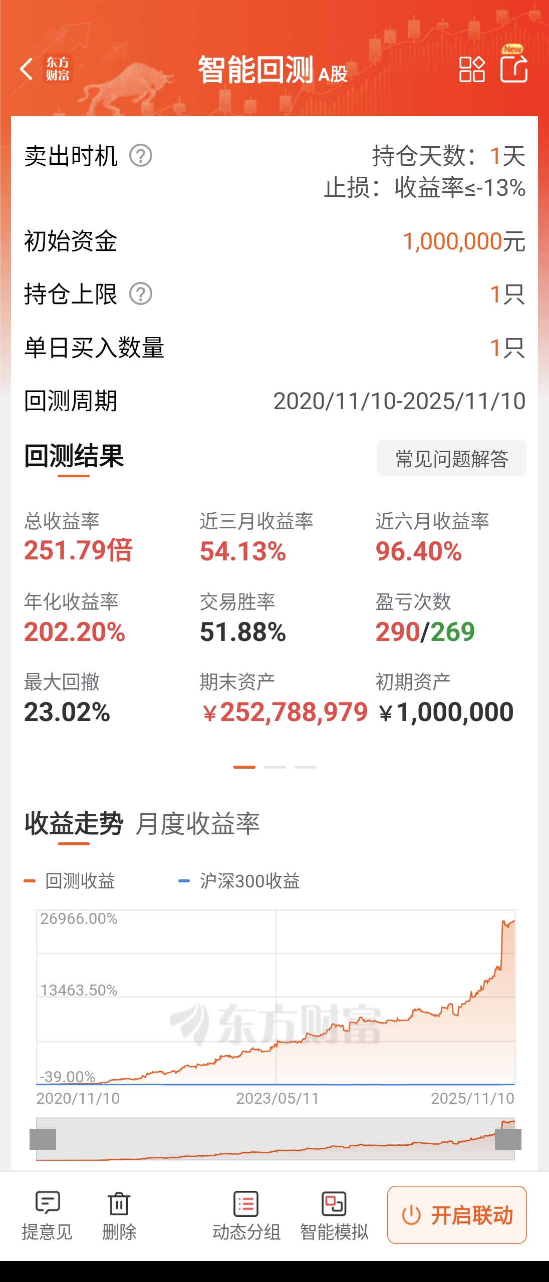 新建主板非st非创业板5年全仓与半仓都是200倍要是回撤能20内就好了