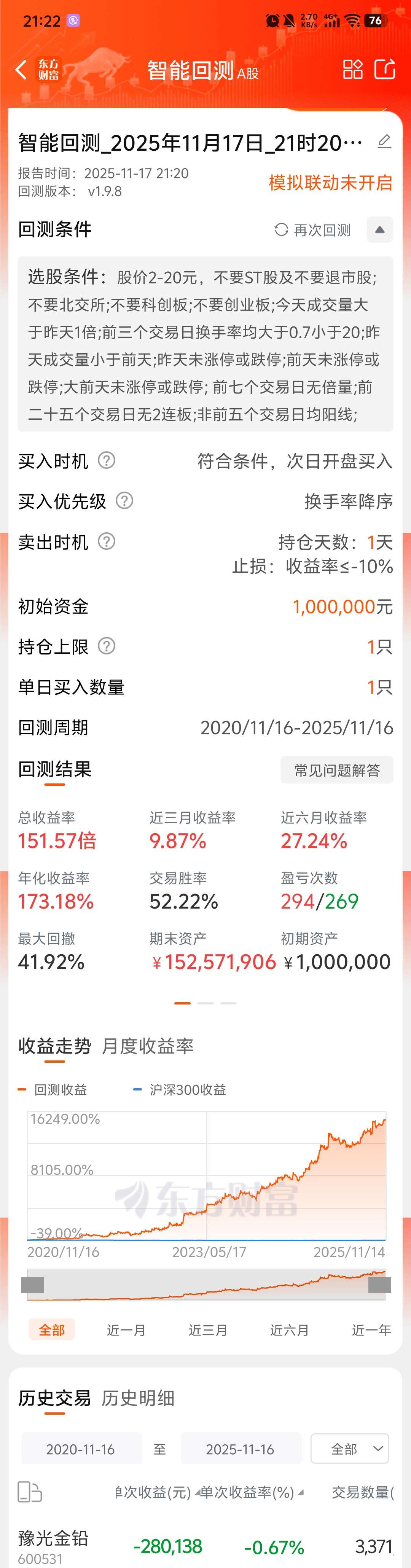 总收益率 9416.26%,近三个月收益率 21.92%,最大回撤 37.65%,点击查看报告详情!