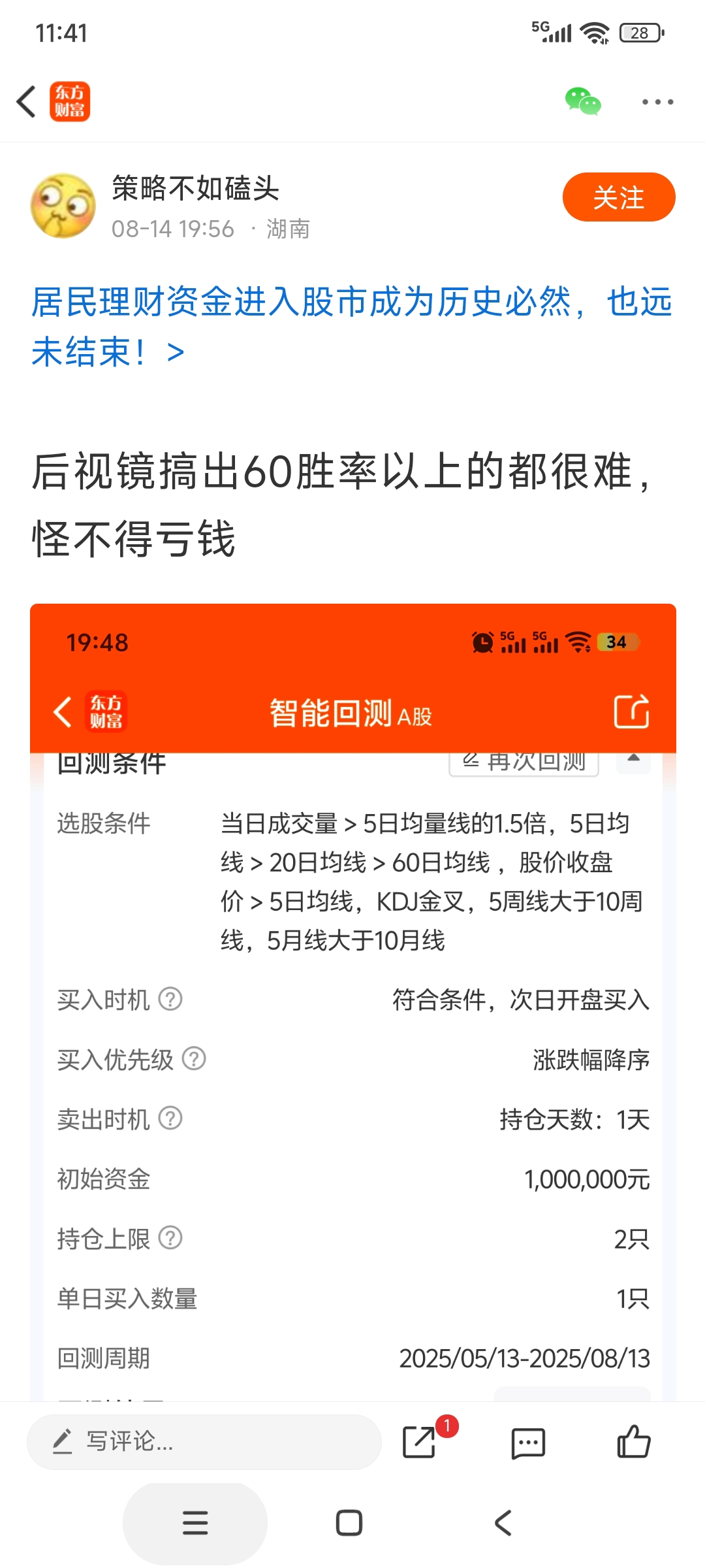 来看看短期策略有多坑。特地找了下几个月前发的公开策略。这策略曲线和现在很多人发的一样,看着非常不错吧。但是他发贴的时候就是顶峰,之后3个月直接腰斩,刚测的