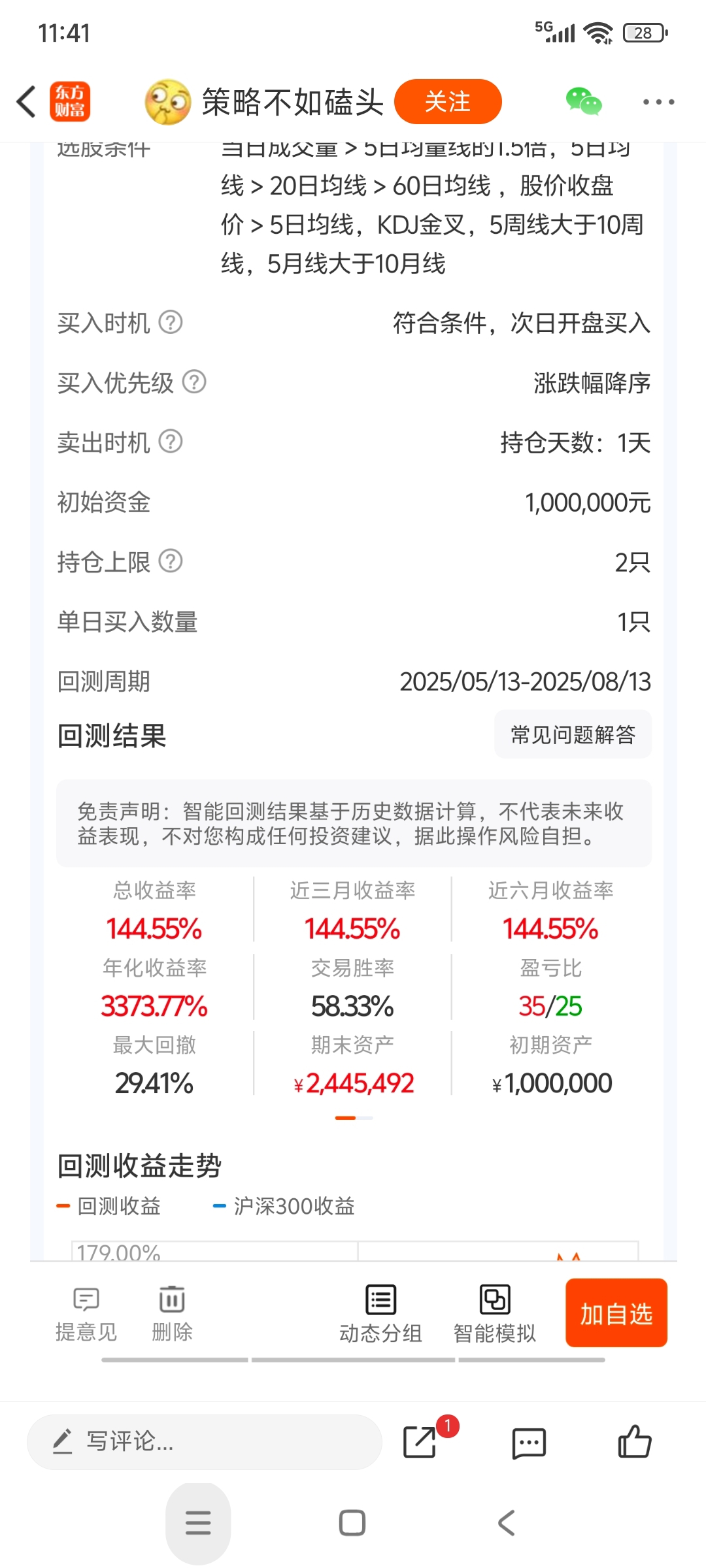 来看看短期策略有多坑。特地找了下几个月前发的公开策略。这策略曲线和现在很多人发的