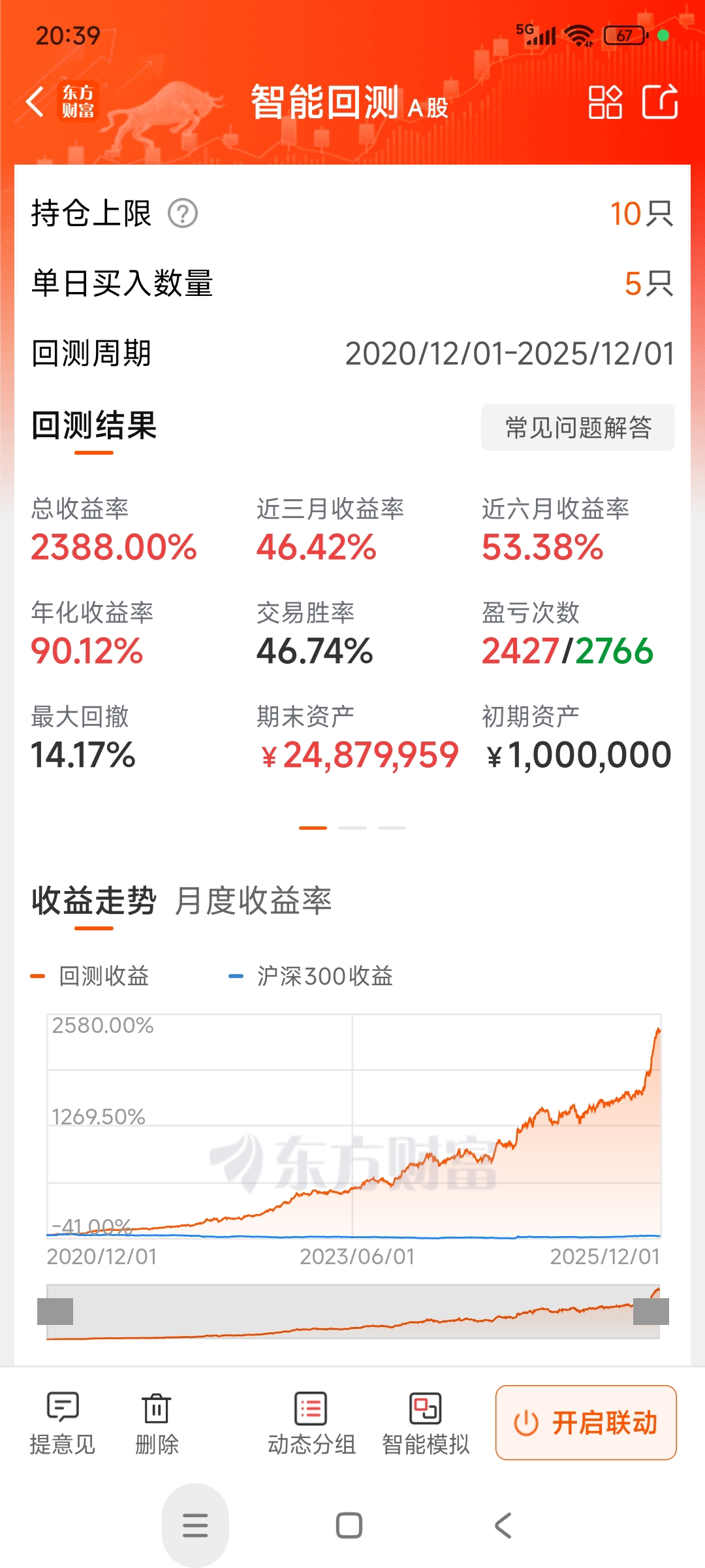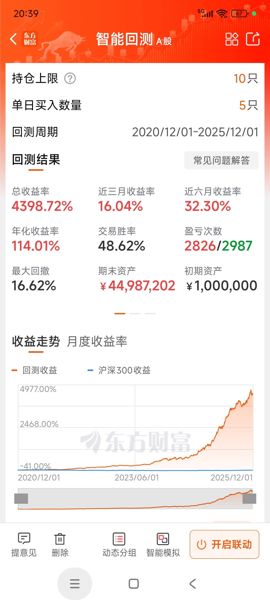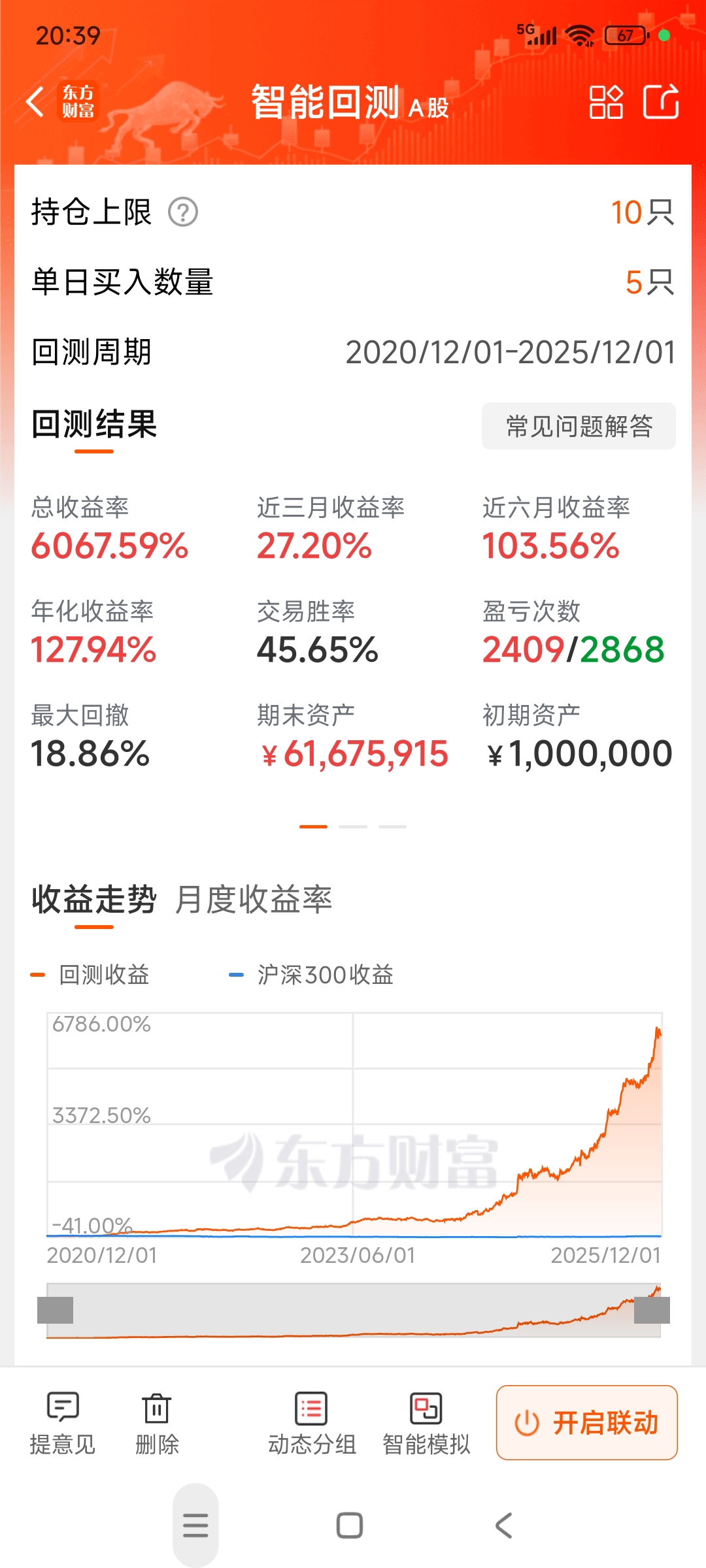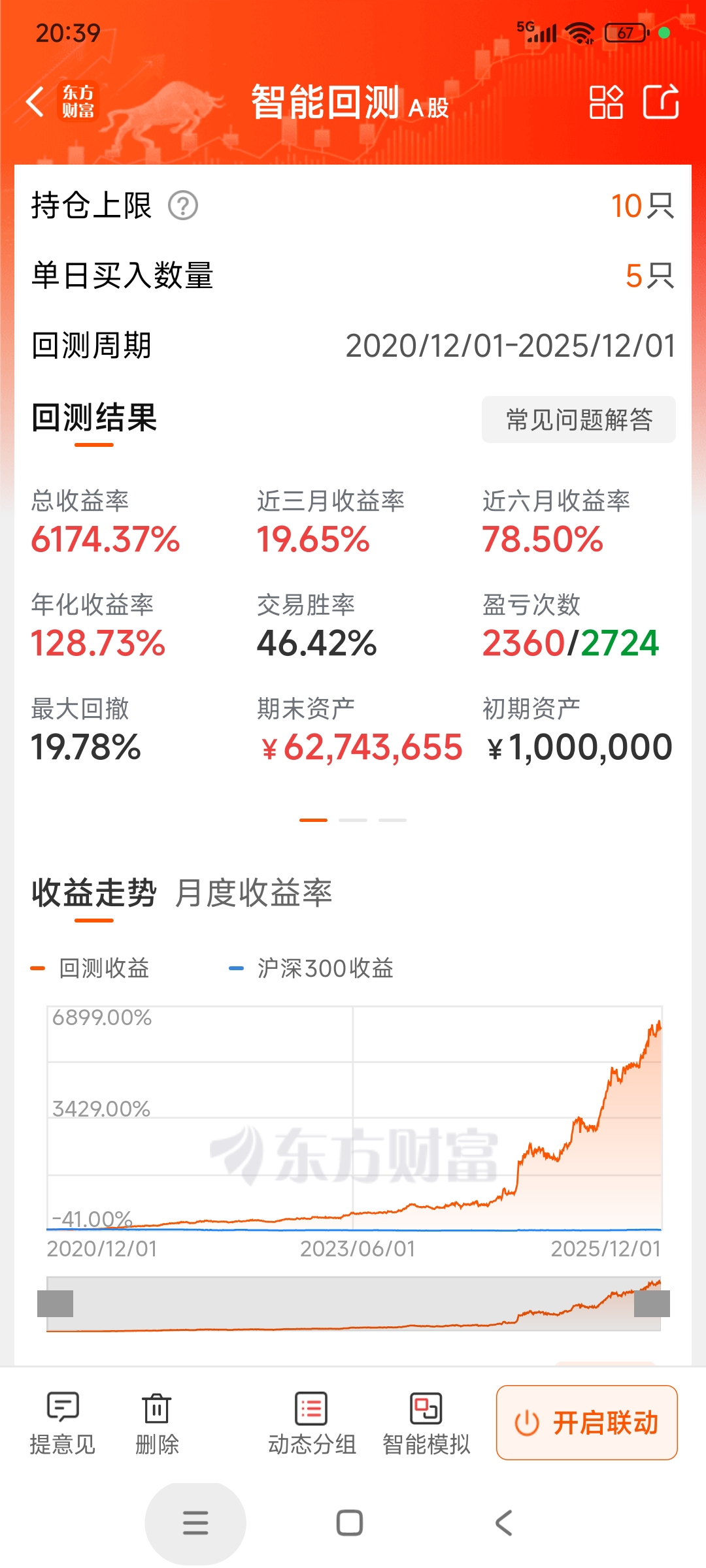 60仓的大策略组合。3个主板3个创业板,每个板都有进取和保守型,曲线各不一样,支