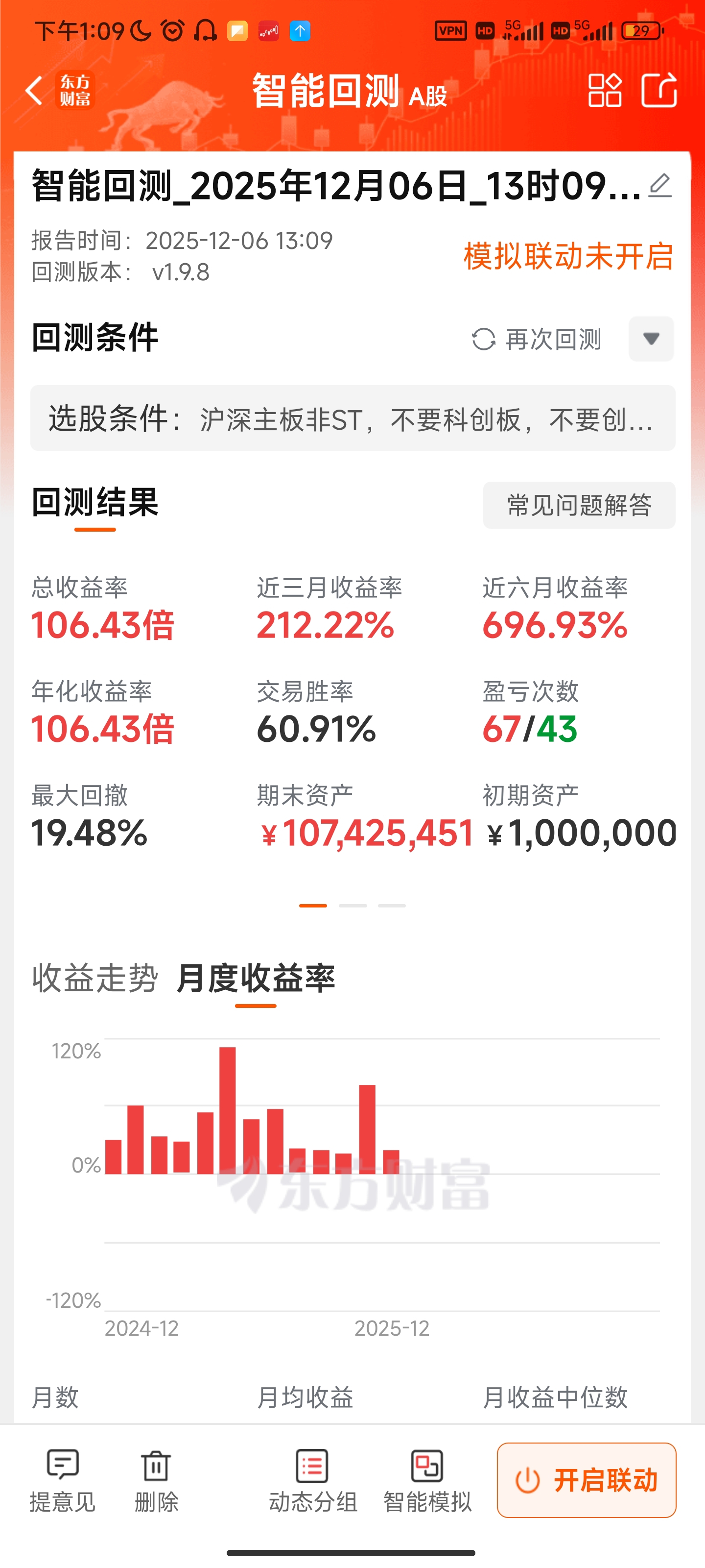 昨晚睡梦中突发灵感,赶紧打开手机,把策略优化了一下,胜率和收益果然提高了不少,小
