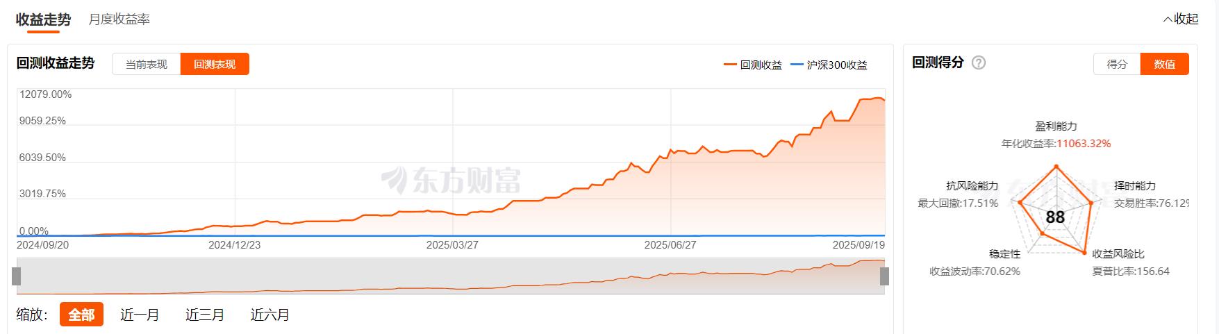 给大家看看过拟合策略是多么的恐怖!一年一百多倍,76的胜率17.5的回撤,实际跑