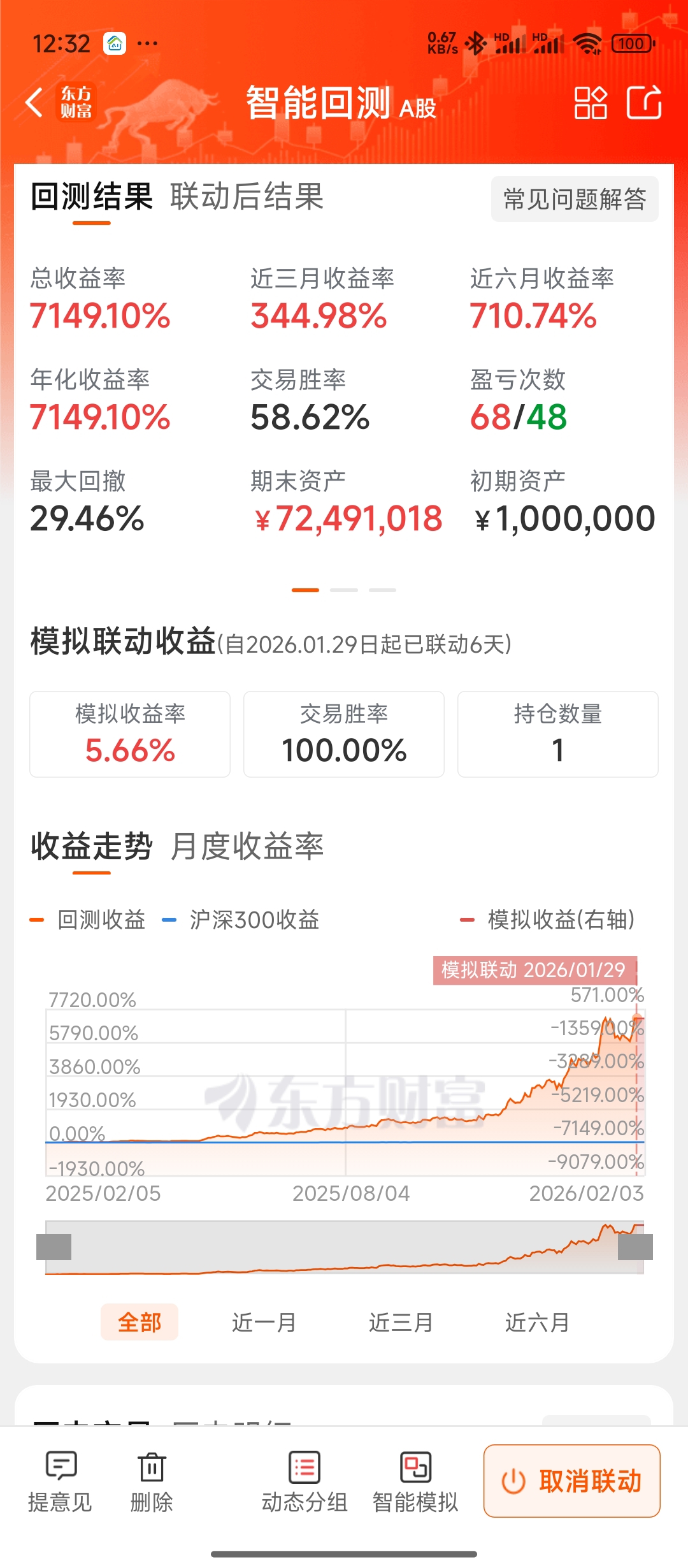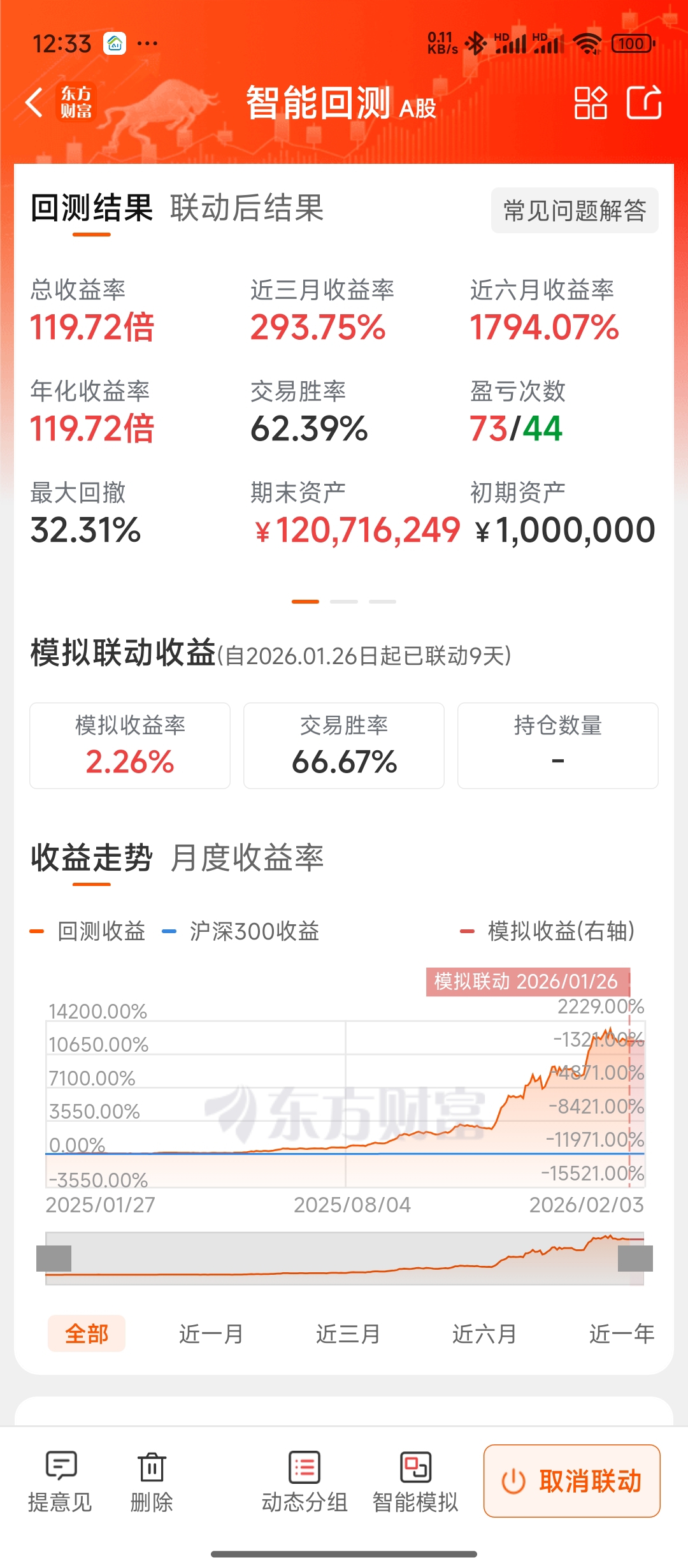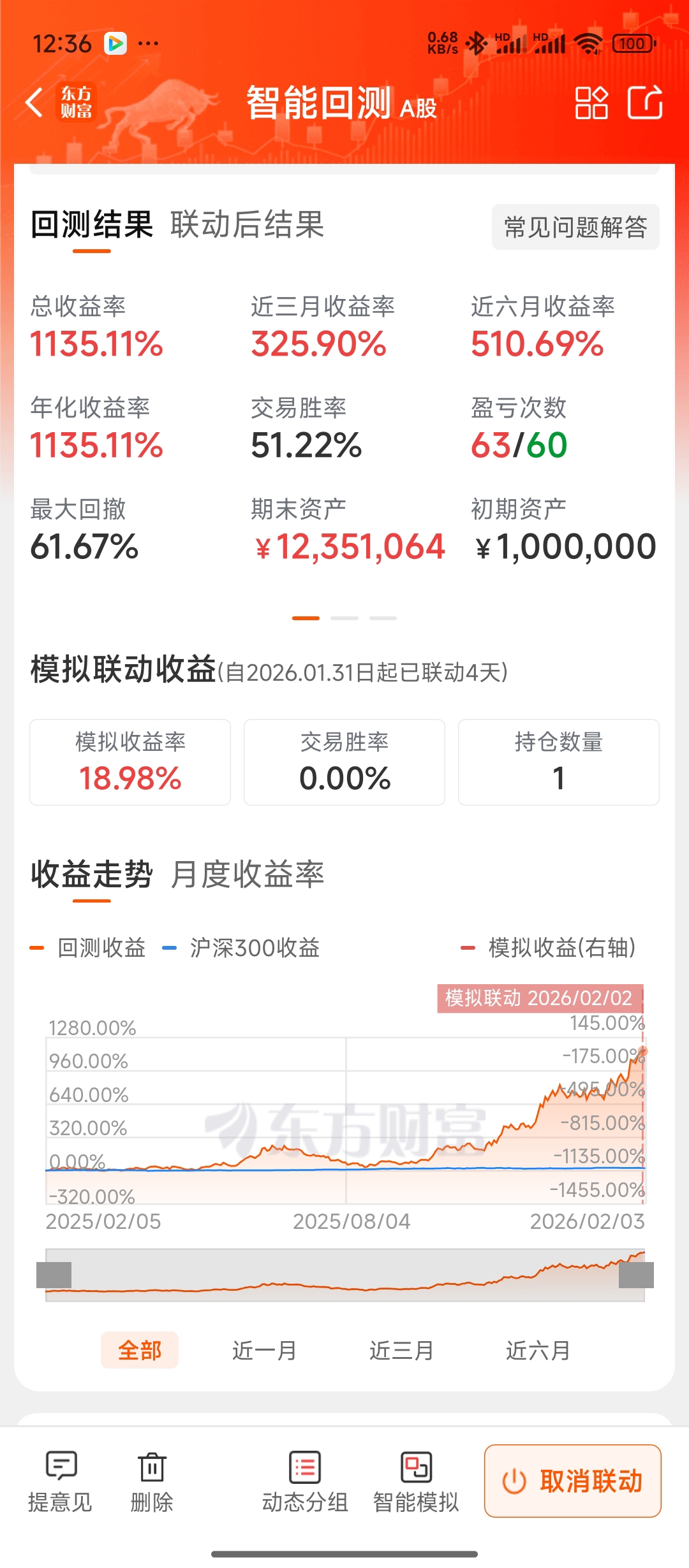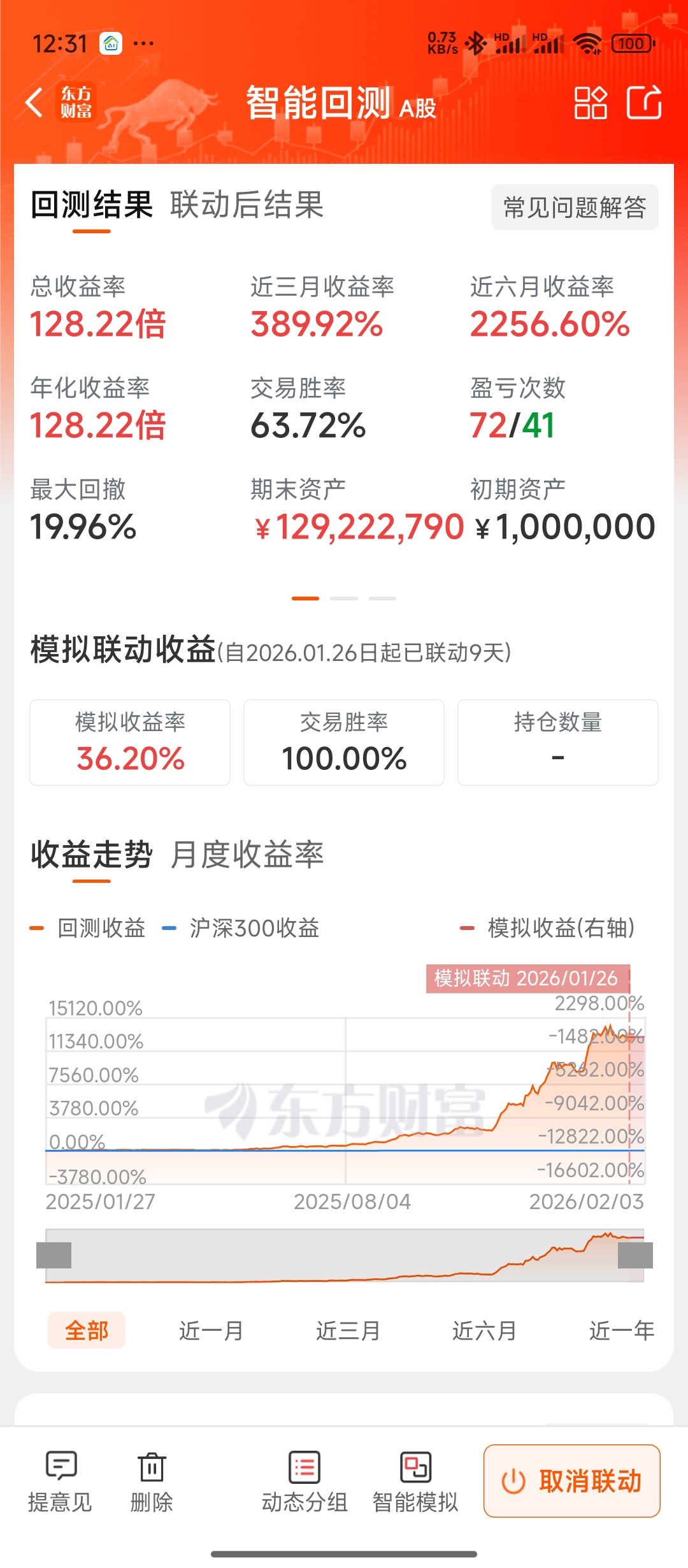 一个最不起眼的策略,1.5天逆势18.98%,胜率最高回测一年128倍的这2天没出票,其他2个策略都跑输不起眼的策略,总之不管是你策略年化收益几倍还是几时倍,甚至一百倍都要市场去检验策略的好与坏。